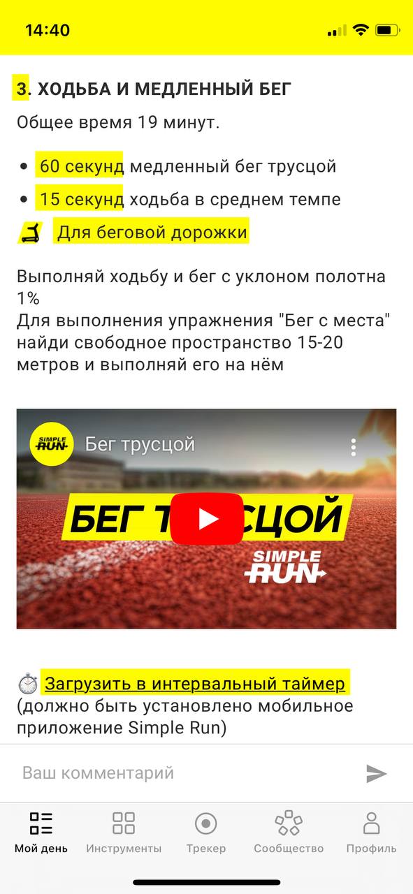 Чтобы быть в курсе новостей проекта Simple Run и получать полезный контент для активной и здоровой жизни - подпишитесь на YouTube и Telegram каналы. А в приложении есть целый набор полезных инструментов, трекер тренировок, полезные статьи и сообщество для общения с единомышленниками.
